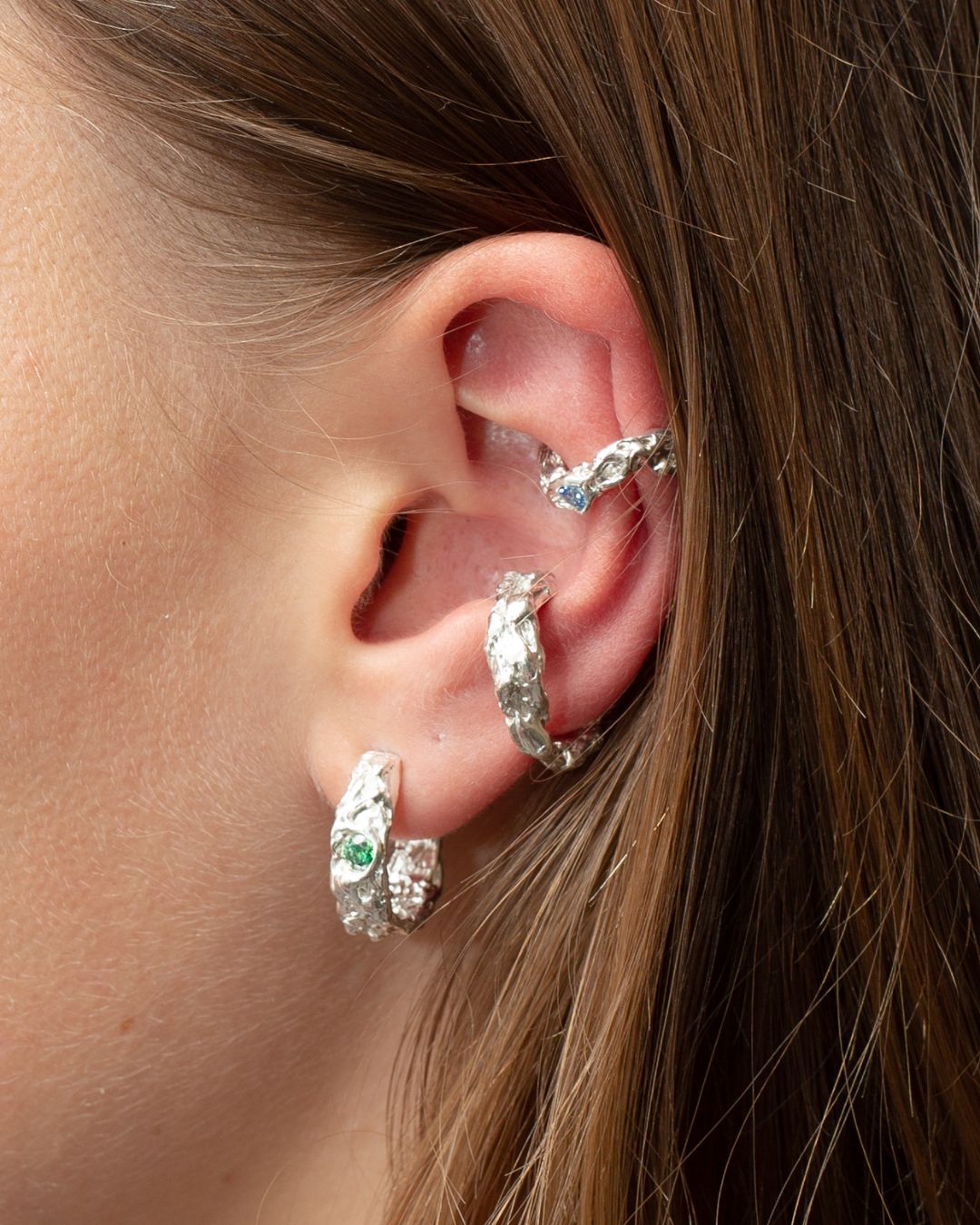 We work exclusively with solid recycled 14K gold and sterling silver. Gentle care is enough: warm water with mild soap for everyday cleaning. For deeper cleaning, an ultrasonic bath may be used.