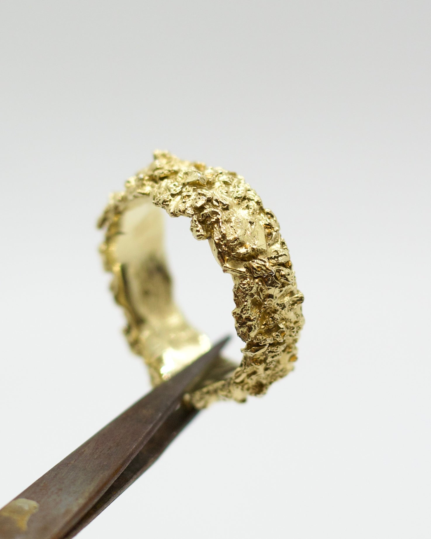 We work exclusively with solid recycled 14K gold and sterling silver. Gentle care is enough: warm water with mild soap for everyday cleaning. For deeper cleaning, an ultrasonic bath may be used.